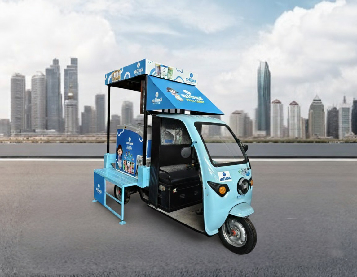 Kerala Automobiles Limited (KAL) has developed an eco-friendly Ice Cream Electric Cart (E-Cart) designed to support sustainable and efficient mobile vending of frozen products, particularly ice cream. This fully electric vehicle is powered by a high-efficiency lithium-ion battery and operates with zero tailpipe emissions, making it an ideal solution for urban and environmentally sensitive areas. The vehicle is equipped with a robust, battery-operated refrigeration unit that maintains the required sub-zero temperatures, ensuring the quality and safety of perishable goods. With a driving range of 100 to 110 kilometres per charge and a top speed of 25 km/h, it complies with low-speed vehicle norms while offering adequate performance for daily vending operations. Charging the cart takes approximately 4.5 to 5 hours using a standard charger.